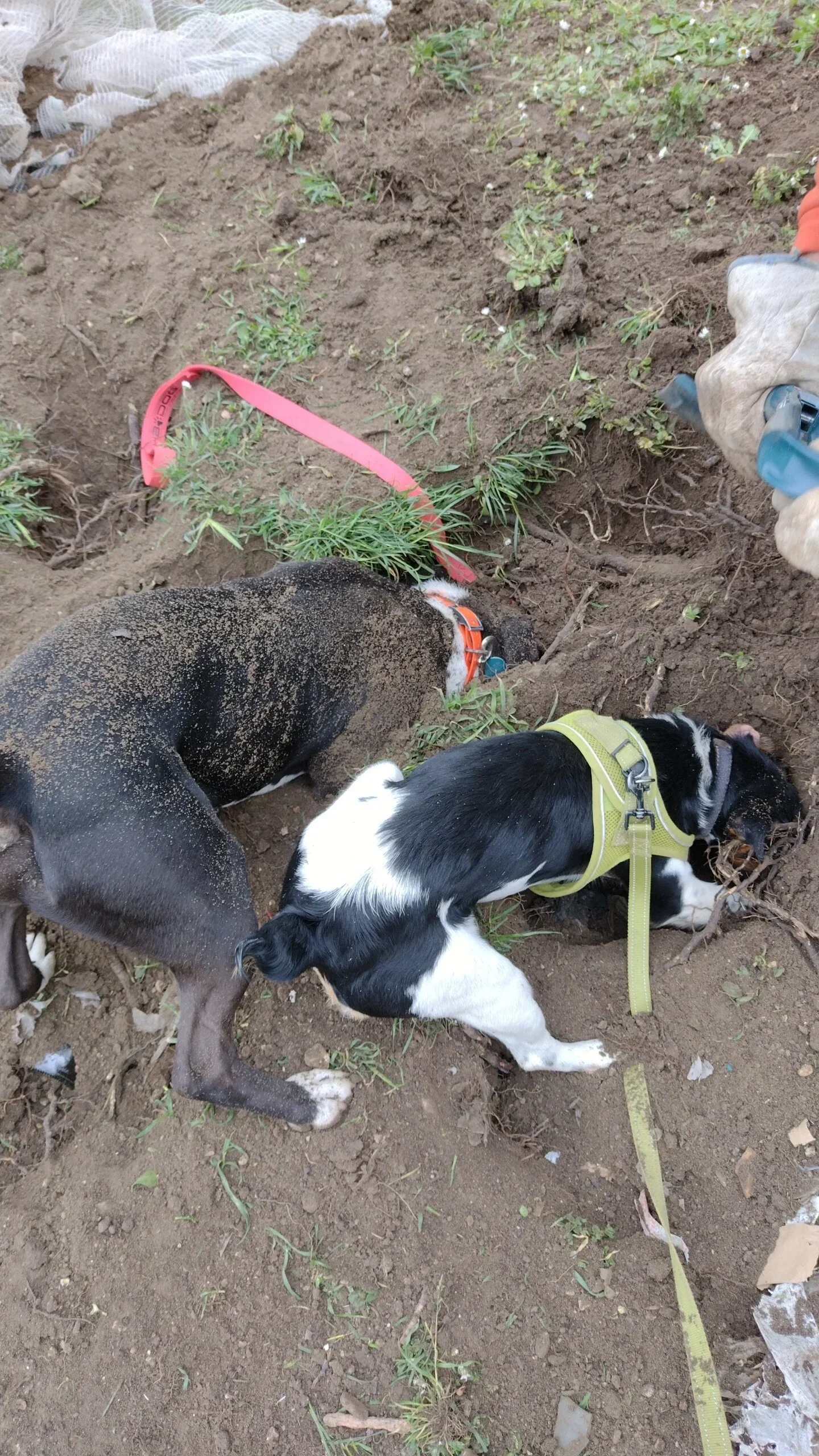 Récupération du furet : Une fois le terrier vide, le furet ressort de lui-même